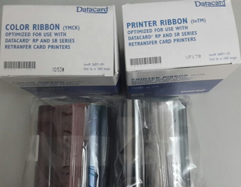 Datacard SR300 Impresora de tarjetas de identificación de PVC de transferencia inversa de doble cara 568971-001 YMCK Cinta de color y juego de película de retransferencia 568971-103